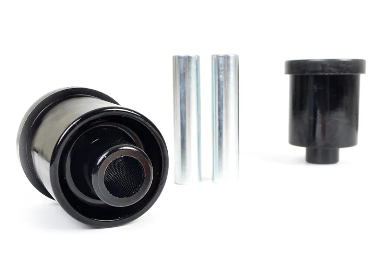 A critical rear end bushing for any front wheel drive vehicle as it absorbs all the cornering and braking energy. Over compliance leads to early wear and tear, especially in performance applications. Reduce rear end cornering squirm and improve braking efficiencies with the Whiteline beam axle kit.