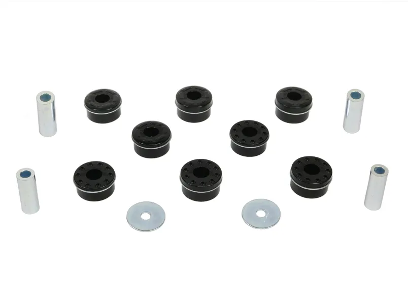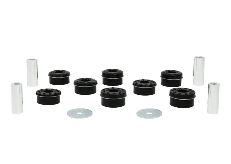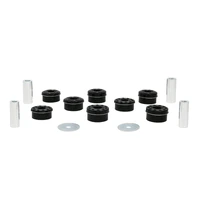 Not your typical remove and replace bushing kit but simple installation means great for the DIYer's. Designed to work with the original bushing and eliminate over compliance or better known in motorsport as 'lost motion' of the rear crossmember. This Whiteline kit dramatically reduces rear cross member misalignment and movement which allows a more positive feel from the rear end during cornering.