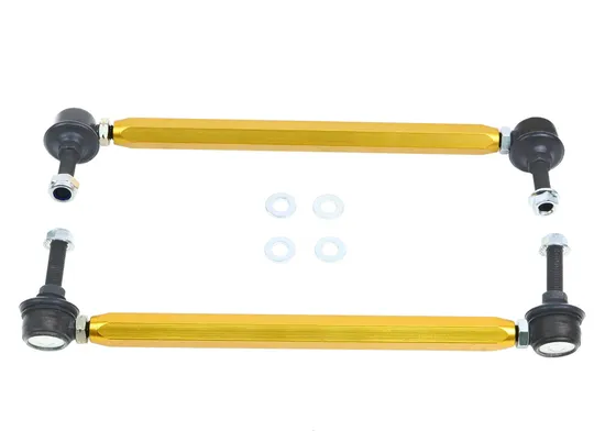 Not many enthusiasts are aware that OE and more importantly aftermarket sway bar effectiveness can be hindered by worn or inadequate mounts, drop links and lateral stoppers. Whiteline adjustable sway bar links are engineered to be up to the task with top spec, light weight componentry combined with a window of adjustability, eliminating sway bar preload on installation but most importantly ensuring the maximum output of the sway bar for improved grip and better handling.