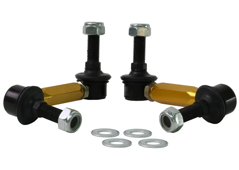 Not many enthusiasts are aware that OE and more importantly aftermarket sway bar effectiveness can be hindered by worn or inadequate mounts, drop links and lateral stoppers. Whiteline adjustable sway bar links are engineered to be up to the task with top spec, light weight componentry combined with a window of adjustability, eliminating sway bar preload on installation but most importantly ensuring the maximum output of the sway bar for improved grip and better handling.