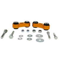 The kit utilises a high tensile extruded alloy link fitted with ultra low compliance synthetic elastomer bushings. Critical hardware is replaced with high tensile components to match the higher loads. The result is much more precise and direct roll control with up to 25% more effective bar rate available at lower wheel deflection points. This does NOT mean an outright increase in your bar rate but rather a quickening of its effect allowing more bar rate earlier. Link shape and bush mounts are designed to allow maximum sway bar articulation to ensure full suspension travel while acting more directly under vertical load. Standard length maintains correct sway bar operation.