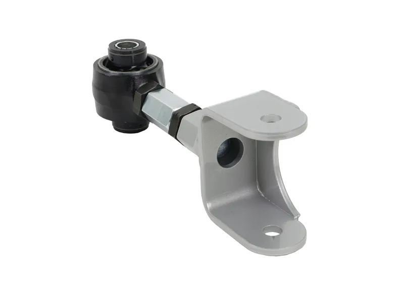 The S197 chassis third link set up has suffered from brake hop and axle tramp with the stock arm and the ultra-compliant stock bushing is designed for comfort and leaves something desired for performance driving. Whiteline's upper control arm is built with 4130 Chromalloy and features the longer arm length which Ford incorporated in the 2011 change which reduces brake hop. The synthetic elastomer bushing adds increased stability to the rear end without the harshness of the commonly used bearing design and features and eccentric crush tube which allows pinion angle / instant center adjustment without weakening the arm with a turnbuckle adjustment. The pinhole voiding feature allows the bushing to articulate without binding. The heavy duty mount adds to the increased rigidity of the arm and is designed to be universal for all years of the S197 chassis.