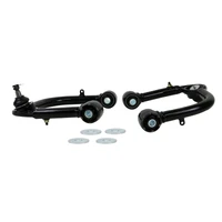 A short fall of the modern day IFS 4wd is the adjustment range provided for successful wheel alignments, this becomes even more of an issue when the vehicle is lifted by more than 1 inch. Not only does the vehicle run into camber and caster issues, but ball joint articulation and clearance issues to the coil over strut at ride and droop height. The new Whiteline offset UCA (Upper Control Arm) is an all-in-one solution for any vehicle that has been lifted between 30mm and 70mm. Providing an increase between +2.5 and +3.5 degrees of caster and up to 1.5 degrees of negative camber increase (figures quoted are based off an approximate 50mm/ 2 inch) along with greater clearance to the coil over strut and more articulation of the arm by virtue of new maintenance free GIIRO bushing technology.