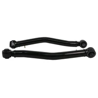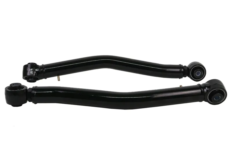 Heavy duty turnbuckle adjustable trailing arms provides incremental on car adjustability of differential pinion angle. This allows you to dial in more or less traction under heavy acceleration.