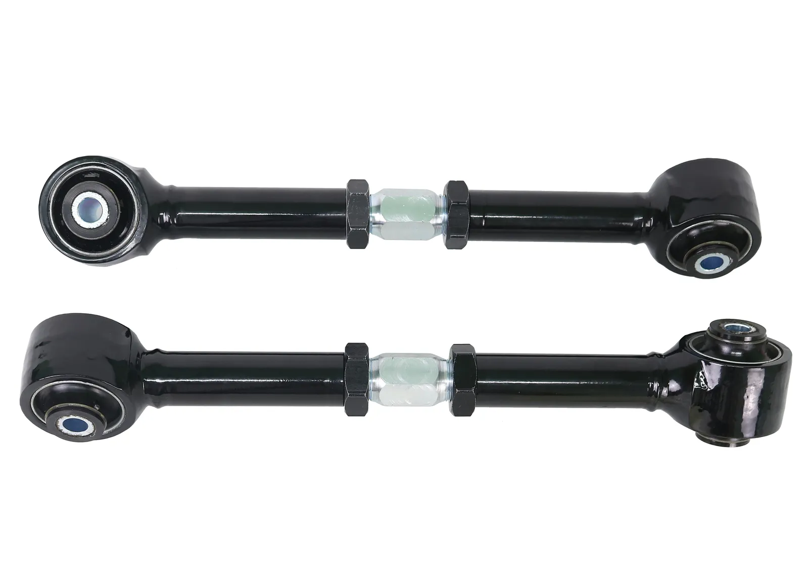 Heavy duty turnbuckle adjustable trailing arms provides incremental on car adjustability of differential pinion angle. This allows you to dial in more or less traction under heavy acceleration. Best matched with Whiteline's heavy duty upper trailing arms for optimum performance.