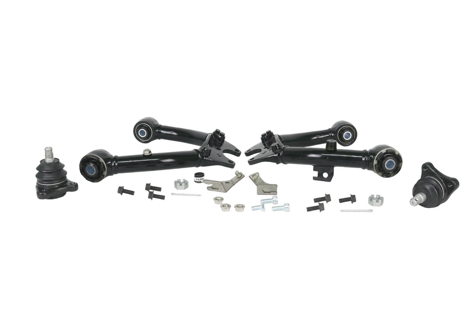 A short fall of the modern day IFS 4wd is the adjustment range provided for successful wheel alignments, this becomes even more of an issue when the vehicle is lifted by more than 1 inch. Not only does the vehicle run into camber and caster issues, but ball joint articulation and clearance issues to the coil over strut at ride and droop height. The new Whiteline offset UCA (Upper Control Arm) is an all-in-one solution for any vehicle that has been lifted between 30mm and 70mm. Providing an increase between +2.5 and +3.5 degrees of caster and up to 1.5 degrees of negative camber increase (figures quoted are based off an approximate 50mm/ 2 inch) along with greater clearance to the coil over strut and more articulation of the arm by virtue of new maintenance free GIIRO bushing technology.