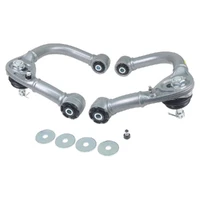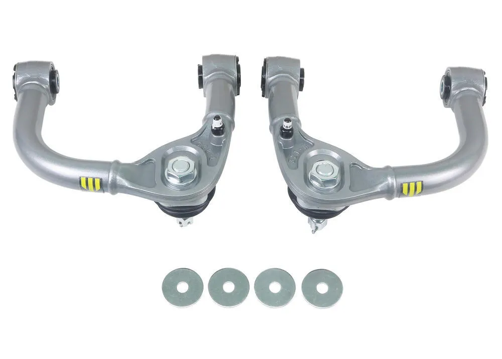 A short fall of the modern day IFS 4wd is the adjustment range provided for successful wheel alignments, this becomes even more of an issue when the vehicle is lifted by more than 1 inch. Not only does the vehicle run into camber and caster issues, but ball joint articulation and clearance issues to the coil over strut at ride and droop height. The new Whiteline adjustable UCA (Upper Control Arm) is an all-in-one solution for any vehicle that has been lifted between 30mm and 70mm. Providing an increase between +0.5 to +3.5 degrees of caster and -1.5 to +1.5 degrees of camber increase (figures quoted are based off an approximate 50mm/ 2 inch) along with greater clearance to the coil over strut and more articulation of the arm by virtue of new maintenance free GIIRO bushing technology.