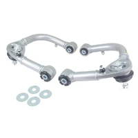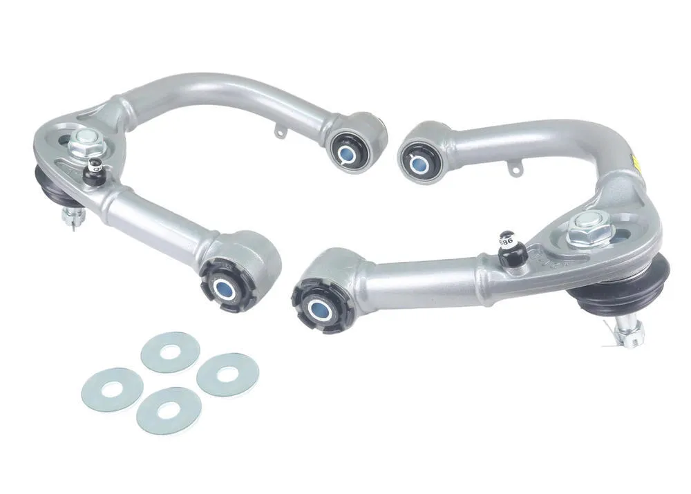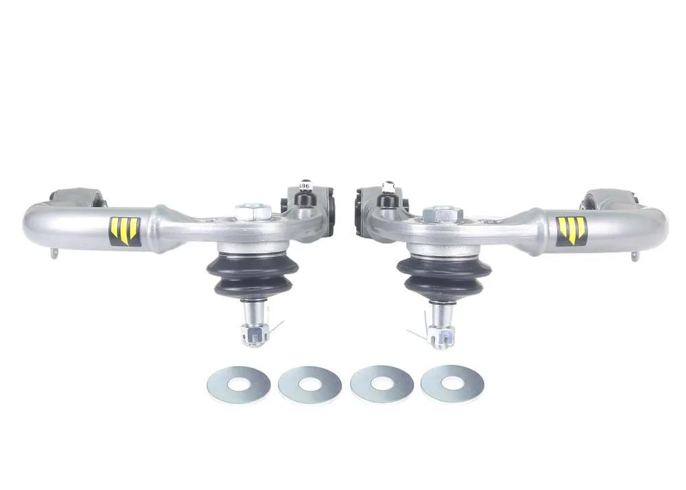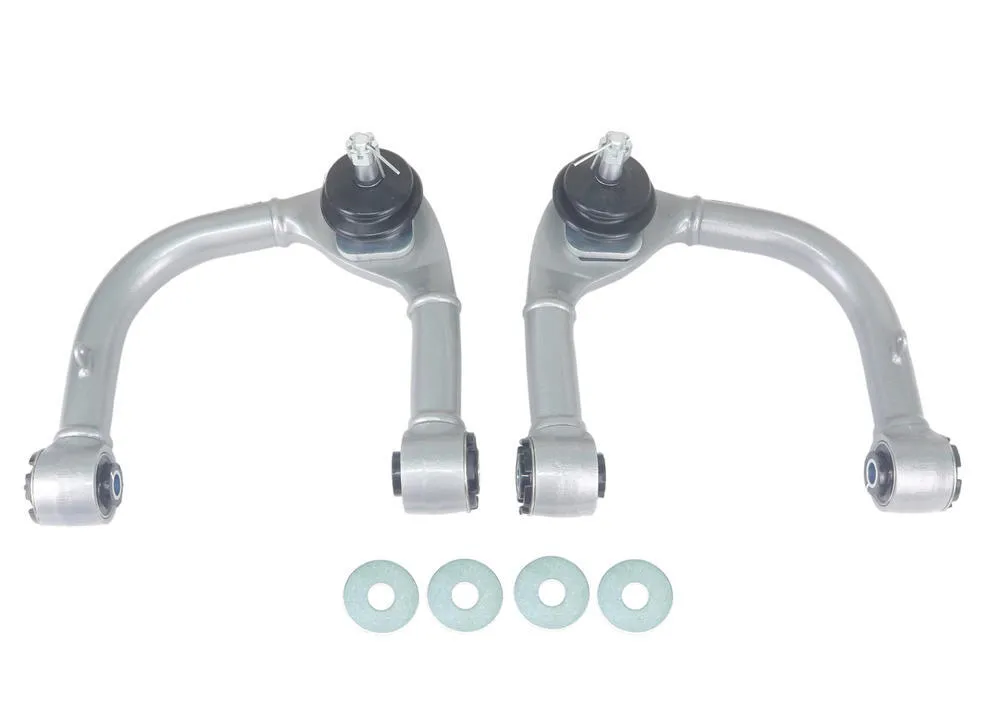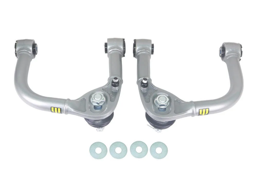 A short fall of the modern day IFS 4wd is the adjustment range provided for successful wheel alignments, this becomes even more of an issue when the vehicle is lifted by more than 1 inch. Not only does the vehicle run into camber and caster issues, but ball joint articulation and clearance issues to the coil over strut at ride and droop height. The new Whiteline adjustable UCA (Upper Control Arm) is an all-in-one solution for any vehicle that has been lifted between 30mm and 70mm. Providing an increase between +0.5 to +3.5 degrees of caster and -1.5 to +1.5 degrees of camber increase (figures quoted are based off an approximate 50mm/ 2 inch) along with greater clearance to the coil over strut and more articulation of the arm by virtue of new maintenance free GIIRO bushing technology.
