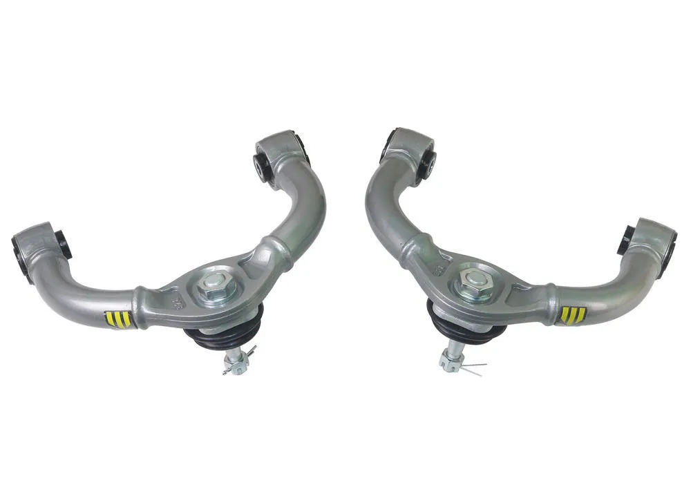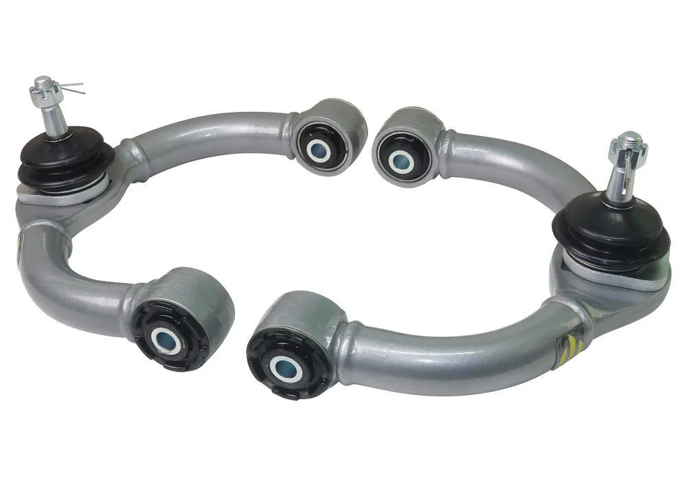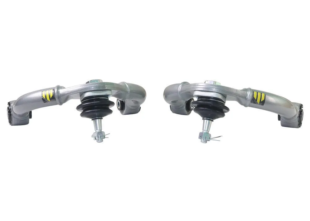 A short fall of the modern day IFS 4wd is the adjustment range provided for successful wheel alignments, this becomes even more of an issue when the vehicle is lifted by more than 1 inch. Not only does the vehicle run into camber and caster issues, but ball joint articulation and clearance issues to the coil over strut at ride and droop height. The new Whiteline adjustable UCA (Upper Control Arm) is an all-in-one solution for any vehicle that has been lifted between 30mm and 70mm. Providing an increase between +0.5 to +3.5 degrees of caster and -1.5 to +1.5 degrees of camber increase (figures quoted are based off an approximate 50mm/ 2 inch) along with greater clearance to the coil over strut and more articulation of the arm by virtue of new maintenance free GIIRO bushing technology.