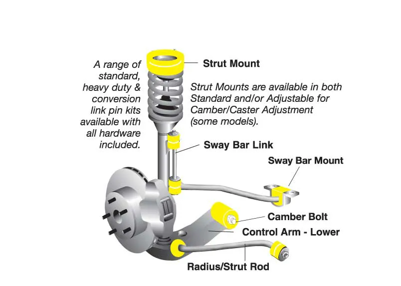 Utilising Whiteline's advanced synthetic elastomer bushings with core characteristics ensuring superior elasticity, memory and outright durability induce positive steering precision and feedback