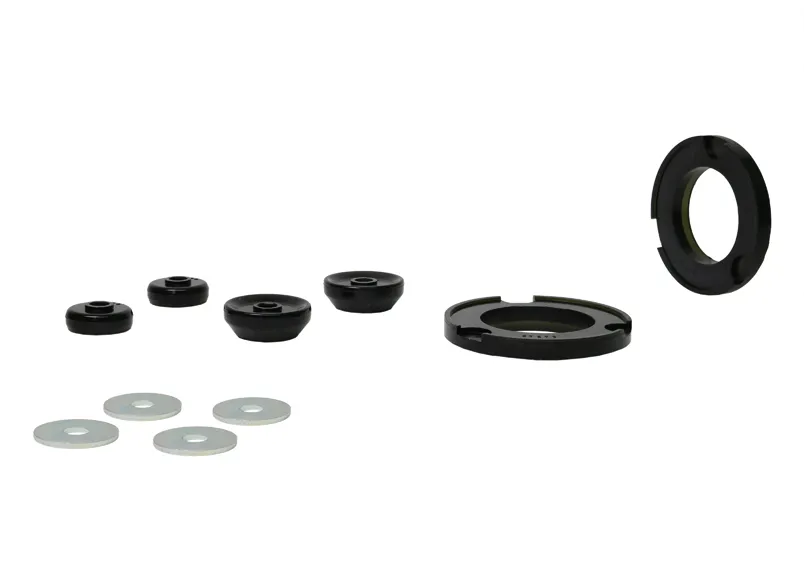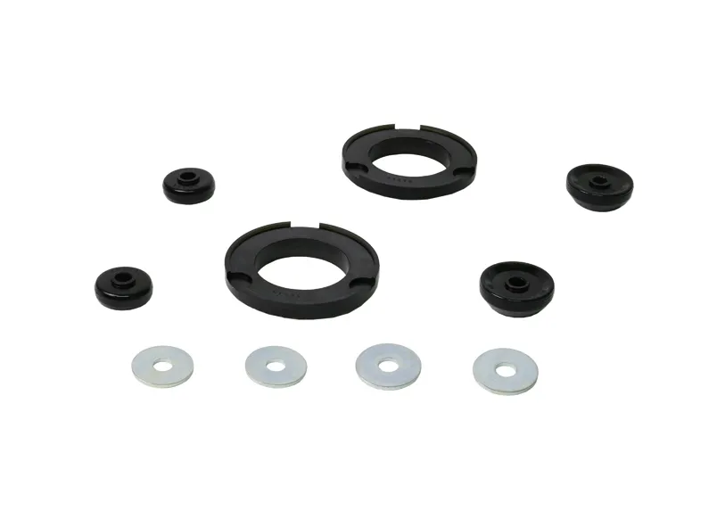 Hard working or lifted commercial or 4x4 vehicles tend to suffer from premature wear of the upper strut mount/ shock absorber bushings. Designed to work with the original OE strut top, each Whiteline kit contains both upper strut mount pads and shock absorber pin bushings to restore the strut mount to as new condition.