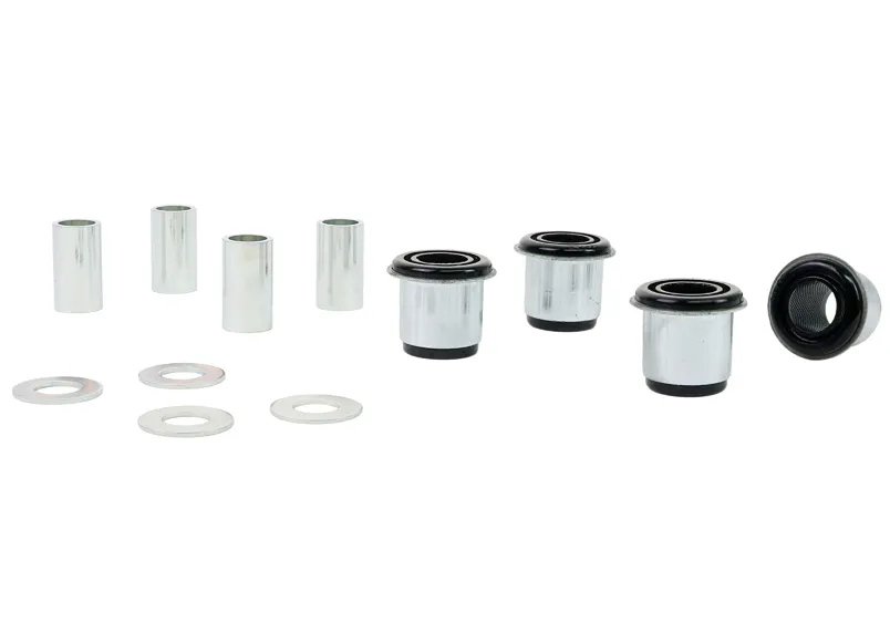 Worn front control arm bushings have a huge influence on vehicle stability, steering precision and braking efficiency. Replace worn bushings to as new condition utilising Whiteline's advanced synthetic elastomer bushings with core characteristics ensuring superior elasticity, memory and outright durability for all forms of driving applications.