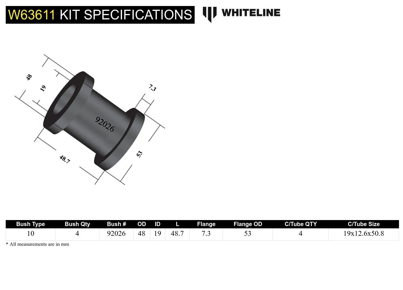 Suffering uneven tyre wear, unbalanced braking or a less predictable rear end while cornering. It could be your trailing arm bushings have failed. Replace these worn parts with Whiteline bushings with core characteristics ensuring superior elasticity, memory and outright durability that offer a safer more predictable vehicle.