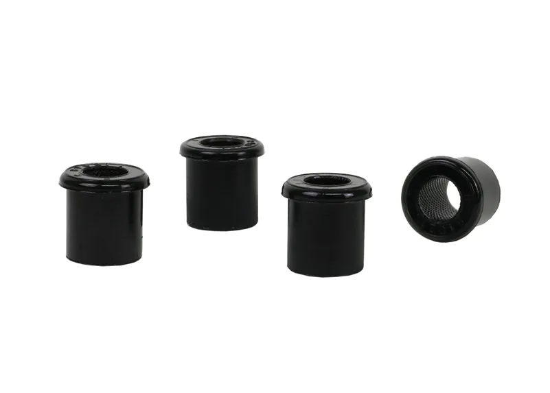 A critical service item for any leaf sprung vehicle. High kilometres and heavy load carrying causes excessive wear on rubber bushings. Whiteline's signature black bushings are made tough and offer outstanding abrasion resistance, high load bearing capability (4WD's, utes and towing), flexibility, increased tensile strength and chemical resistance to oil, grease, ozone and weathering.