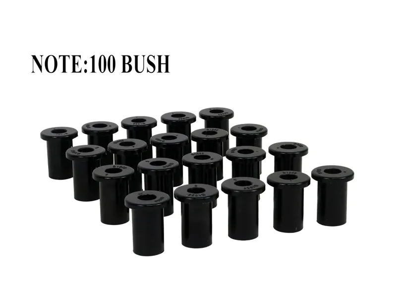 A critical service item for any leaf sprung vehicle. High kilometres and heavy load carrying causes excessive wear on rubber bushings. Whiteline's signature black bushings are made tough and offer outstanding abrasion resistance, high load bearing capability (4WD's, utes and towing), flexibility, increased tensile strength and chemical resistance to oil, grease, ozone and weathering.
