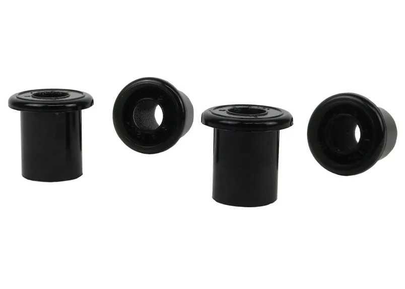 A critical service item for any leaf sprung vehicle. High kilometres and heavy load carrying causes excessive wear on rubber bushings. Whiteline's signature black bushings are made tough and offer outstanding abrasion resistance, high load bearing capability (4WD's, utes and towing), flexibility, increased tensile strength and chemical resistance to oil, grease, ozone and weathering.
