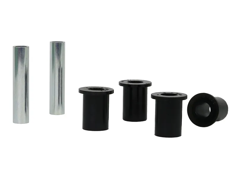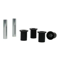 A critical service item for any leaf sprung vehicle. High kilometres and heavy load carrying causes excessive wear on rubber bushings. Whiteline's signature black bushings are made tough and offer outstanding abrasion resistance, high load bearing capability (4WD's, utes and towing), flexibility, increased tensile strength and chemical resistance to oil, grease, ozone and weathering.