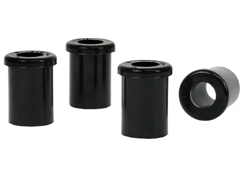 A critical service item for any leaf sprung vehicle. High kilometres and heavy load carrying causes excessive wear on rubber bushings. Whiteline's signature black bushings are made tough and offer outstanding abrasion resistance, high load bearing capability (4WD's, utes and towing), flexibility, increased tensile strength and chemical resistance to oil, grease, ozone and weathering.