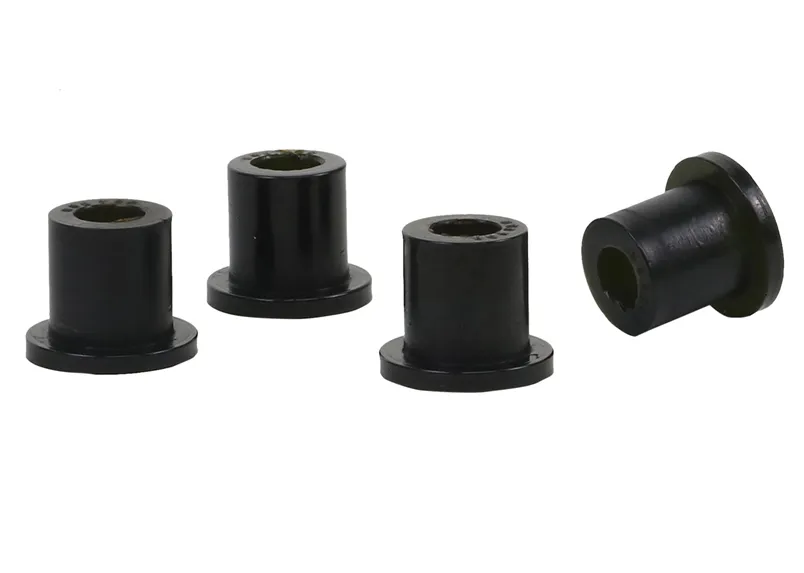 A critical service item for any leaf sprung vehicle. High kilometres and heavy load carrying causes excessive wear on rubber bushings. Whiteline's signature black bushings are made tough and offer outstanding abrasion resistance, high load bearing capability (4WD's, utes and towing), flexibility, increased tensile strength and chemical resistance to oil, grease, ozone and weathering.