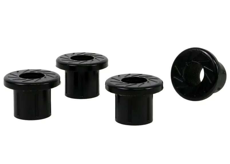 A critical service item for any leaf sprung vehicle. High kilometres and heavy load carrying causes excessive wear on rubber bushings. Whiteline's signature black bushings are made tough and offer outstanding abrasion resistance, high load bearing capability (4WD's, utes and towing), flexibility, increased tensile strength and chemical resistance to oil, grease, ozone and weathering.