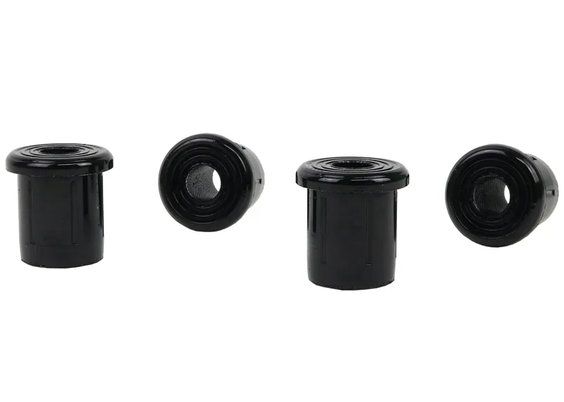 A critical service item for any leaf sprung vehicle. High kilometres and heavy load carrying causes excessive wear on rubber bushings. Whiteline's signature black bushings are made tough and offer outstanding abrasion resistance, high load bearing capability (4WD's, utes and towing), flexibility, increased tensile strength and chemical resistance to oil, grease, ozone and weathering.