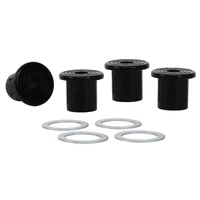 A critical service item for any leaf sprung vehicle. High kilometres and heavy load carrying causes excessive wear on rubber bushings. Whiteline's signature black bushings are made tough and offer outstanding abrasion resistance, high load bearing capability (4WD's, utes and towing), flexibility, increased tensile strength and chemical resistance to oil, grease, ozone and weathering.