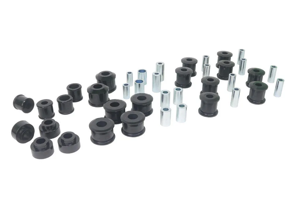 By matching key bushing, alignment and geometry products into one solution, Whiteline Essential Kits provide bang for your buck handling upgrades that simply Activate More Grip. Essentials include upgraded chassis control bushings for the front and rear control arms, front caster kit with rear positive traction differential and subframe insert bushings that deliver go kart like steering and next level traction to your vehicle.