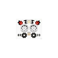 Combination hydro-mechanical Parking Brake calipers use hydraulic pressure from the master cylinder for stopping power, and an internal mechanical lock within the caliper for a parking brake. CPB kits are built primarily for front wheel drive vehicles, and select rear wheel drive axles that are not well suited for internal shoe style parking brakes. The calipers are coupled with oversized two-piece rotor assemblies with aluminum hats and high friction BP-10 compound pads. CPB kits provide the correct balanced brake performance and matching style to compliment front big brake upgrade kits.