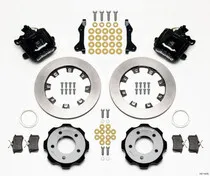 Combination hydro-mechanical Parking Brake calipers use hydraulic pressure from the master cylinder for stopping power, and an internal mechanical lock within the caliper for a parking brake. CPB kits are built primarily for front wheel drive vehicles, and select rear wheel drive axles that are not well suited for internal shoe style parking brakes. The calipers are coupled with oversized two-piece rotor assemblies with aluminum hats and high friction BP-10 compound pads. CPB kits provide the correct balanced brake performance and matching style to compliment front big brake upgrade kits.
