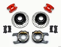 D154 Pro-Series rear disc kits provides a complete solution for popular muscle car rear axles that require a parking brake. Forged D154 dual piston calipers, 12.19 one-piece drum/rotors, and high friction pads provide optimized and balanced braking for all types of custom performance street/strip and show machines. The neatly hidden internal shoe system provides a clean installation with superior static holding power for parking. D154 rear caliper kits offer a complimentary match to vehicles using Wilwood D52 or D154 calipers on OE spindles. Optional caliper finishes and rotor designs enable the builder to personalize the style and optimize brake performance.