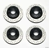 ProMatrix Front and Rear Rotor Kits offer measurable brake performance improvements to racers and enthusiasts using the OE factory brake calipers. Two piece aluminum hat and GT 72 & 32 Curved Vane Spec-37 assemblies are used to provide high temperature durability for the track and high-tech style for the street. Spec-37 rotors are manufactured from a proprietary iron alloy developed to withstand extreme temperatures with the highest possible degree of resistance against distortion, warping, cracking, and wear. The formulation for this alloy is a derivative of technology and materials that were significant in the development of the extreme duty military spec rotors that are manufactured by Wilwood.