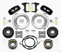 AERO4 Big Brake Rear Axle Kits replace the factory disc brakes and use the OE parking brake assembly as a compliment to front big brake upgrades on late model high performance vehicles. High capacity braking from the W4AR calipers, BP-20 compound pads, and oversized 14.00" rotors are matched to the OE master cylinder output, ABS function, and individual vehicle bias requirements. Enhanced brake performance, increased durability, and high-tech style compliment big wheel, tire, and suspension upgrades on customized vehicles and all others with increased brake requirements.