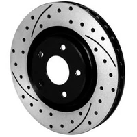 For custom, show and high performance sport driving, SRP Dimpled rotors offer the high tech look and improved performance of a directional cross-drill and face slot pattern. In addition to the aesthetic appeal, the venting and cleaning action of the dimple and slot pattern helps to reduce pad glaze and minimize irregular pad build-up on the rotor faces. The results are a smoother engagement feel at the pedal and consistent response from the pads. Each rotor is precision machined to less than .001 tolerance for overall flatness, parallelism, and radial run-out on long grain carbon iron castings. The rotors are finished with a black electro coat to provide corrosion resistance.