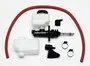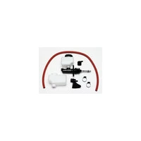 ‘This new version of Wilwood's Compact Combination Master Cylinders now features a 3/8-24 banjo outlet. Designed for limited space applications requiring the output capacity of a full size master cylinder. The ultra-short 3.37”compact body provides 2.16” of additional clearance between the mounting flange and the fluid outlet. A full 1.12” of piston stroke meets or exceeds the stroke capacity of most full size cylinders. With 3/8-24 fluid outlet port located at the top radius of the cylinder bore, reduces the chances for trapped air. Enhanced fluid inlet port allows mounting of the standard reservoir included in kit and also contains 11/16-20 internal threads for custom reservoir arrangements. The black E-Coated aluminum body resists corrosion and maintains a durable long lasting finish.