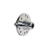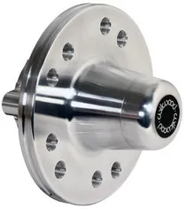 Forged Billet Aluminum Vented Rotor Offset Hubs are made from premium grade alloy billets are forged into shape under high heat and pressure, then CNC machined for precise fit on each spindle application. Intended for use with intermediate adapter plates with vented .81" width rotors, but can also be used with aluminum mounting hats for custom applications. This specific hub is double drilled with a 5 x 4.50" / 5 x 4.75" wheel lug pattern. Hubs include bearing races and screw-on aluminum caps.