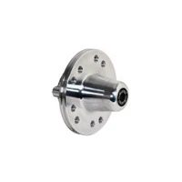 Forged Billet Aluminum Vented Rotor Offset Hubs are made from premium grade alloy billets are forged into shape under high heat and pressure, then CNC machined for precise fit on each spindle application. Intended for use with intermediate adapter plates with vented .81" width rotors, but can also be used with aluminum mounting hats for custom applications. This specific hub is double drilled with a 5 x 4.50" / 5 x 4.75" wheel lug pattern. Hubs include bearing races and screw-on aluminum caps.