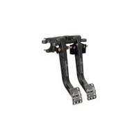 This swinging mount pedal assembly combines the brake and clutch pedals in one unit with the master cylinders in a forward position outside the firewall. It features a lightweight aluminum frame, with high strength reinforced I-Beam style forged 6.25:1 ratio pedal arms. The non-skid waffled pedal pads can be laterally adjusted for driver preference or clearance as necessary. The balance bar incorporates a positive detent stop every full turn to maintain adjustment position and driver awareness. A pin and clevis pushrod attachment system provides highest possible degree of misalignment angle for bind free operation through the entire range of travel. The balance bar can be locked in place with the included jam nut, or used with an optional remote cable for quick on-track adjustments. This pedal accepts any Wilwood vertical mount flange single outlet master cylinders that are ordered separately by style and bore size.