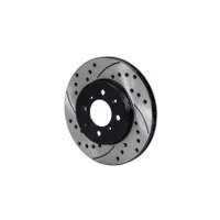 For custom, show and high performance sport driving, SRP rotors offer the high tech look and improved performance of a directional cross-drill and face slot pattern. In addition to the aesthetic appeal, the venting and cleaning action of the hole and slot pattern helps to reduce pad glaze and minimize irregular pad build-up on the rotor faces. The results are a smoother engagement feel at the pedal and consistent response from the pads. Each rotor is precision machined to less than .001 tolerance for overall flatness, parallelism, and radial run-out on long grain carbon iron castings. The rotors are finished with a black electro coat to provide corrosion resistance.