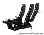 Wilwoods new floor mount pedal assembly has a brake / clutch / throttle triple pedal design. There are three individual fabricated steel pedals with non-slip pedal pads to control brake, clutch and throttle. Pedal assembly part number 340-12410 is for rear engine cars and does not include a throttle bell crank and linkage. This unit features an aluminum frame with strong lightweight fabricated steel pedal arms. The frame and the pedal arms have a black e-coat finish for protection and an attractive appearance. Also included with the pedal assembly are mounting studs, clevises, and balance bar assembly that is designed to provide smooth and accurate settings of the brake pedal bias. The balance bar can be set and locked down with the jam nut, or attached to a remote cable for quick on-track adjustments. The pedal assembly provides a 5.25 to 1 nominal ratio.