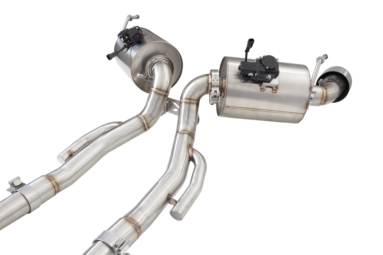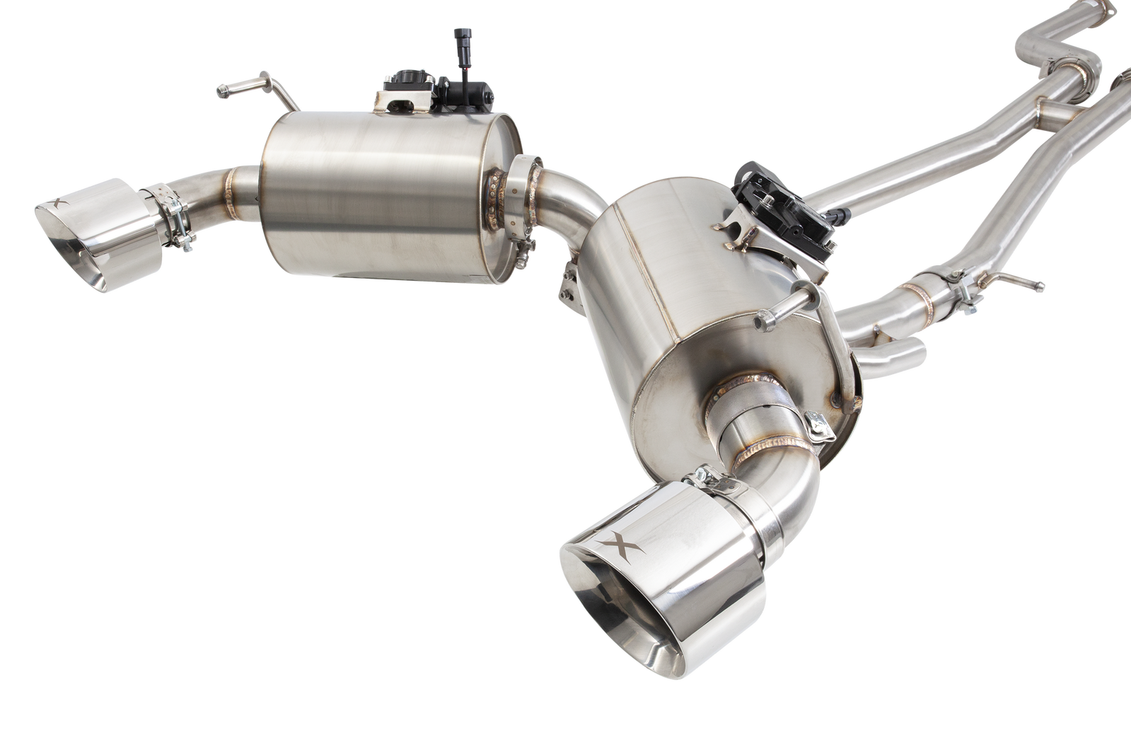 The Xforce Varex Exhaust System is equipped with twin hotdog resonators in the centre and rear J pipe drone canisters to provide a refined exhaust note with minimal drone. The highlight of the system is the Varex rear mufflers, which allow you to switch between an aggressive, sporty sound and a quieter, more subdued tone at the touch of a button. The system is completed with V-band clamps for secure connections and easy adjustments, an X logo brace for added rigidity, and 4″ polished stainless steel angle cut tips that perfectly complement the sleek lines of the Nissan Z.