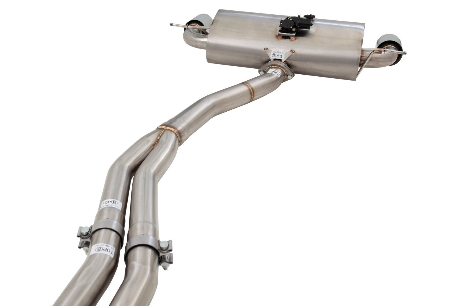 • OEM size splitting to twin 2.5? then collecting to 3? at rear