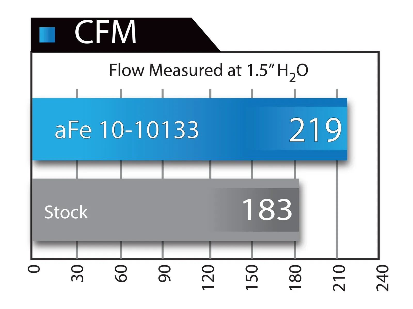 Pro 5R Filter Media: This filter features five layers of pre-oiled cotton gauze media to provide maximum performance. Its progressive layering allows the filter to flow at high levels even when dirty, while its inverted top makes for more filter surface area, resulting in longer service intervals. This media is perfect for street and/or track use. Pro 5R filters are easily recharged with aFe's POWER CLEANER and blue air filter oil.Click here for more information about our filter media.