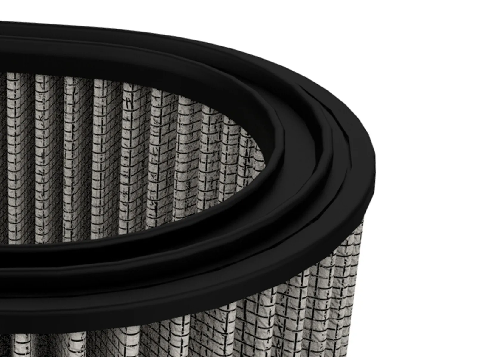 This aFe POWER performance air filter is constructed with a polyurethane base and top. Unlike other materials that degrade after repeated heat cycles in an engine bay, polyurethane maintains its original molded shape.