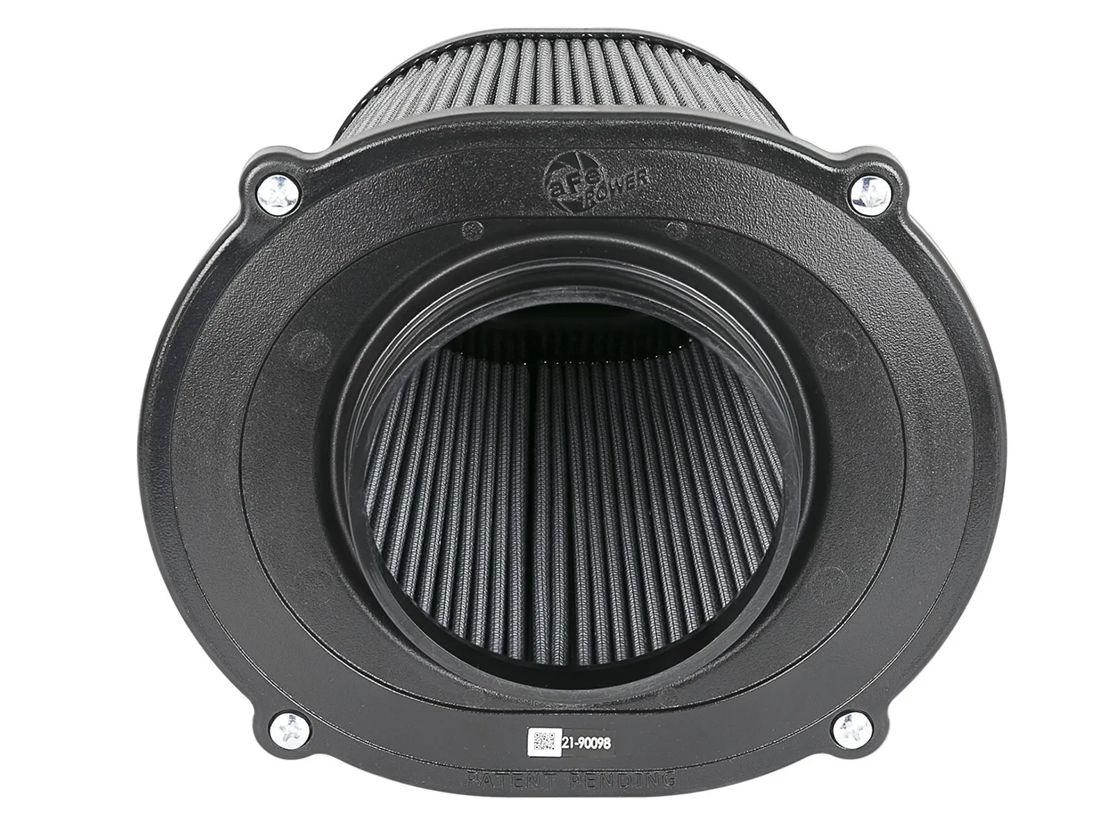 Quantum Pro DRY S air filter by aFe Power is specifically designed for the Quantum Series cold air intake systems and feature an injection molded base and top for lighter weight and rigidity. The newly designed base includes a built-in, 3-angle velocity stack for smooth, even airflow. The Quantum Pro DRY S filter is a 360-degree radial flow air filter with oil-free, 3-layer progressively finer porosity synthetic media for optimum flow, filtration and convenience. Captive screws are included to eliminate lost hardware and to securely fasten to the Quantum Intake system housing.