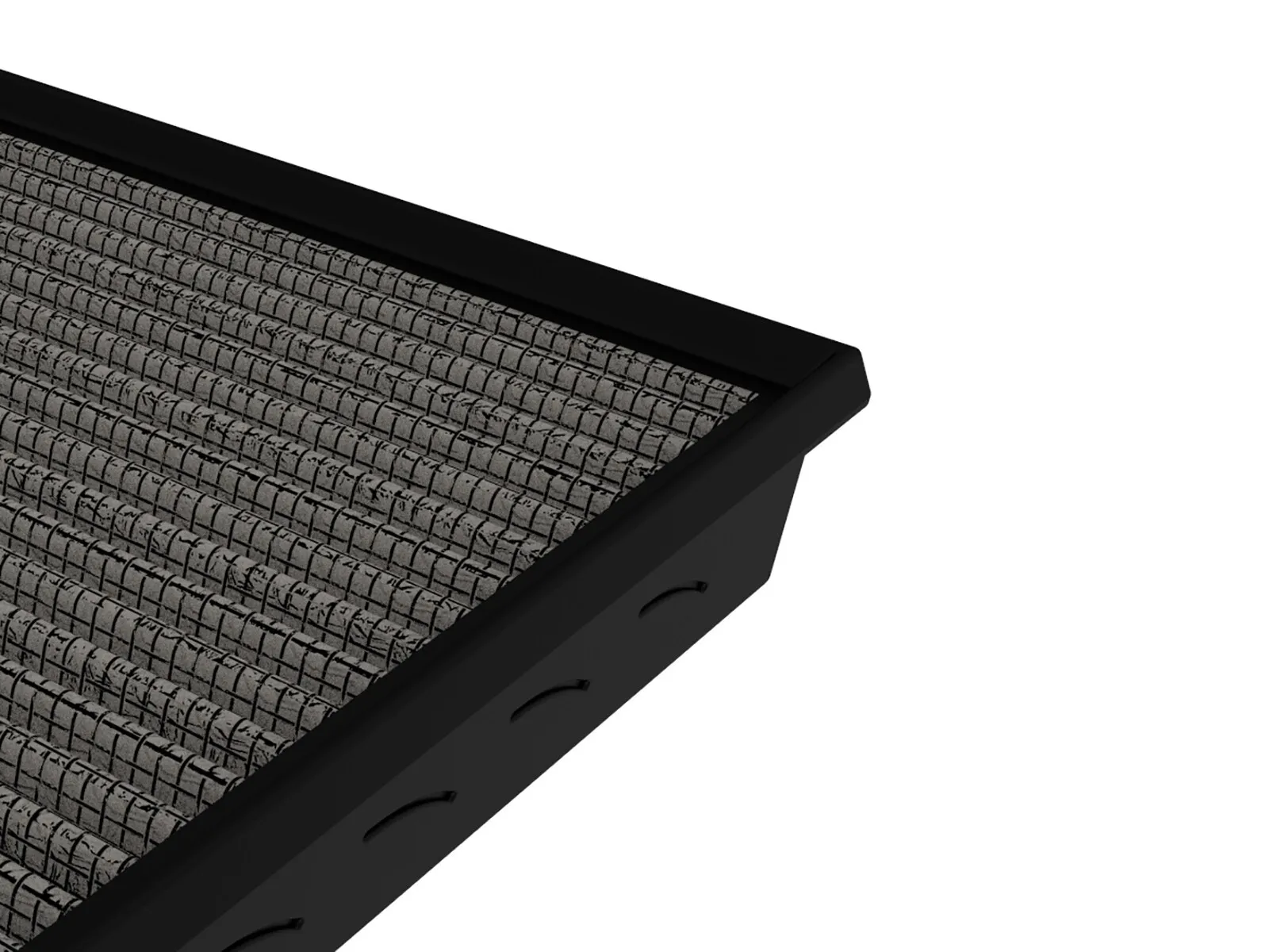Pro DRY S Media: This filter features 3-layers of progressive media to provide maximum flow with excellent filtration. The progressive layering of media allows the filter to flow at high levels even when dirty. The Pro DRY S non-oiled synthetic air filter requires no oils for cleaning for maximum convenience. Rounded Open Pleats: aFe performance air filters use a rounded pleat design which produces more useable filter surface area for increased flow and greater dust holding capacity. Progressive Bump Seal: This pliable sealing surface conforms to even the most uneven filter housing. This design eliminates the use of gaskets or sealants. The soft urethane construction always goes back to its original form so you will never compress the bump seal. This makes for a perfect filter fit and sealing surface every time. Full Urethane Housing: aFe POWER performance air filters are constructed using full 360 degree urethane frames. This construction allows for a proper OE style fit with excellent filter strength. aFe POWER OE replacement performance filters have a limited lifetime warranty.