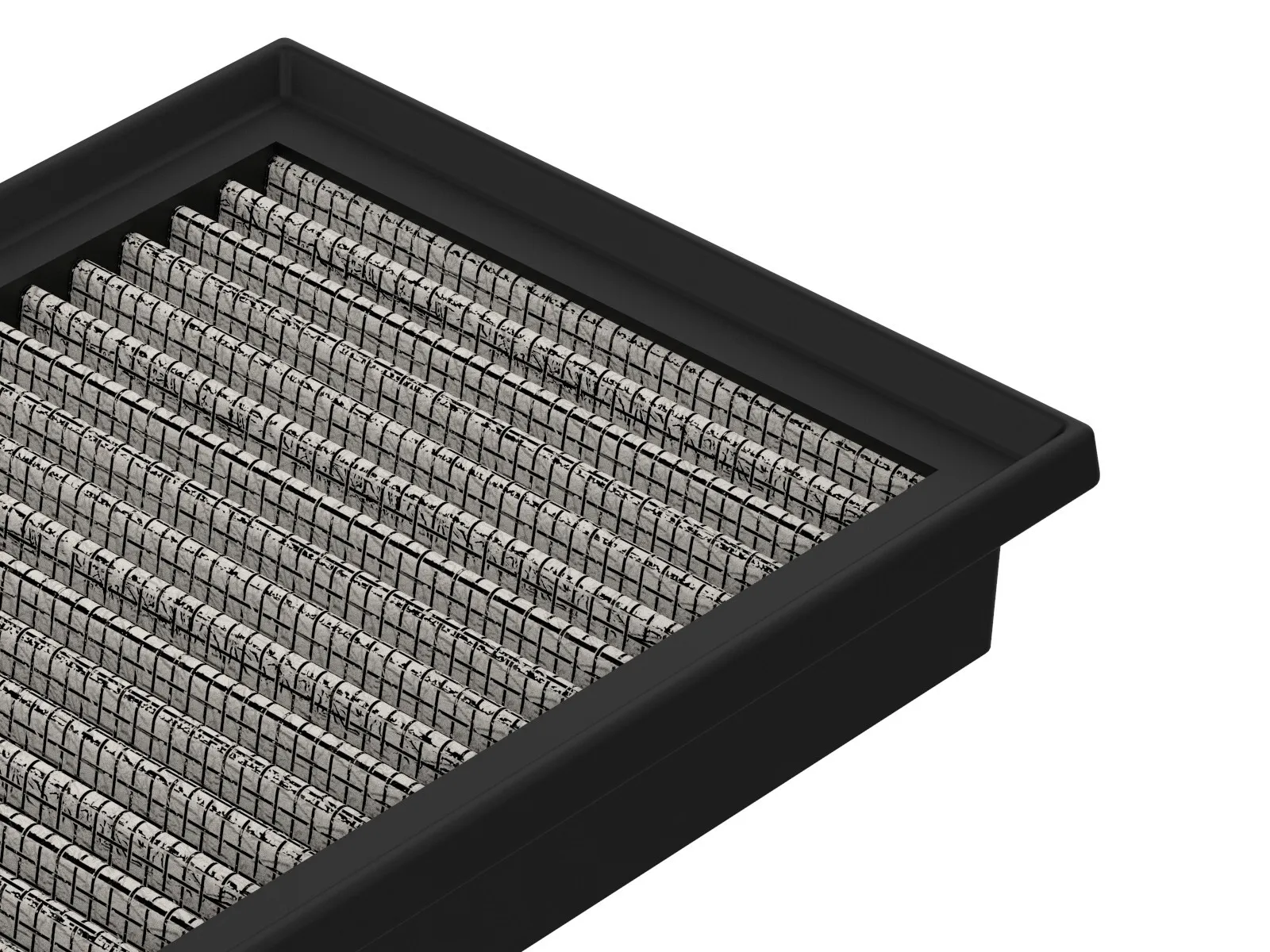 Full Polyurethane Frame: All aFe POWER flat panel performance air filters are constructed with a full 360-degree polyurethane frame. Unlike other materials that degrade after repeated heat cycles in an engine bay, polyurethane maintains its original molded shape.
