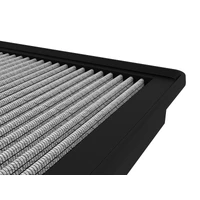 This filter features three layers of oil-free synthetic media and requires no oil during maintenance to provide maximum convenience. Its progressive layering provides great filtration efficiency and dust holding capacity. This media is best suited for street use. Pro DRY S filters are easily recharged with aFe's POWER CLEANER. aFe POWER performance air filters use a rounded, evenly spaced pleat design which allows for more usable filter surface area, providing increased flow and greater dust holding capacity. This pliable sealing surface conforms to even the most uneven filter housing, making for a perfect filter fit and sealing surface every time. This design eliminates the use of gaskets or sealants and always goes back to its original form. All aFe POWER flat panel performance air filters are constructed with a full 360-degree polyurethane frame. Unlike other materials that degrade after repeated heat cycles in an engine bay, polyurethane maintains its original molded shape.
