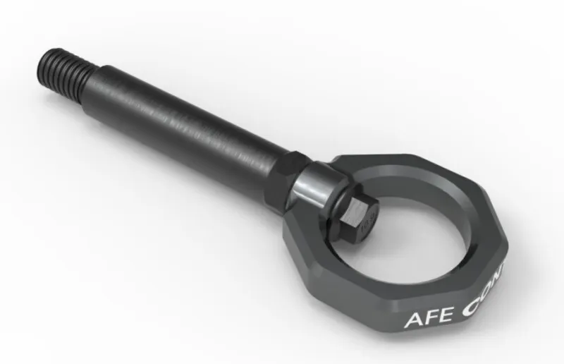 Add aggressive styling, and useful functionality to your BMW with aFe CONTROL rear tow hook. Its sleek design not only looks great but is strong enough to safely winch your car onto a tow truck or get towed trackside if the need arises. Our BMW specific CNC machined stem and loop is made of 4130 steel. The stem is black zinc coated for corrosion resistance. The loop is powder coated Gray (Red, Blue, and black are available). This is not a universal tow hook. The stem was specifically designed for the BMW and the length was carefully determined to fit the rear bumper. A proper front tow hook to match is also available. (p/n 450-502001-G) Both the stem and bolt threads are pre-coated with Vibra-tite threadlocker. This keeps your tow hook from loosening due to vibration. The special threadlocker is designed to remain flexible, removable, and reusable.