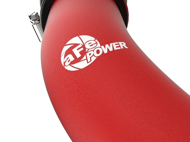 Smooth transitions in the mandrel-bent aluminum pipe decreases turbulence and minimizes pressure loss, increasing horsepower and torque. This kit includes high-quality, stainless-steel, SmartSeal clamps and a heavy-duty, 5-ply, polyester reinforced silicone coupling. This charge pipe kit also features a factory style billet aluminum quick-connect Adapter with an o-ring seal to ensure a leak-free fit while maintaining superior strength and durability. Finished in textured red powder coating with a unique laser-etched aFe POWER logo for a custom look.