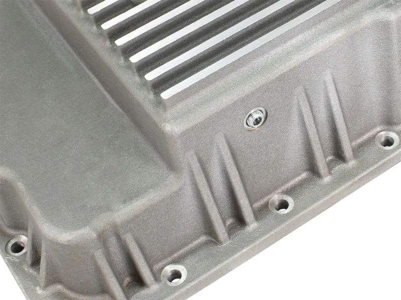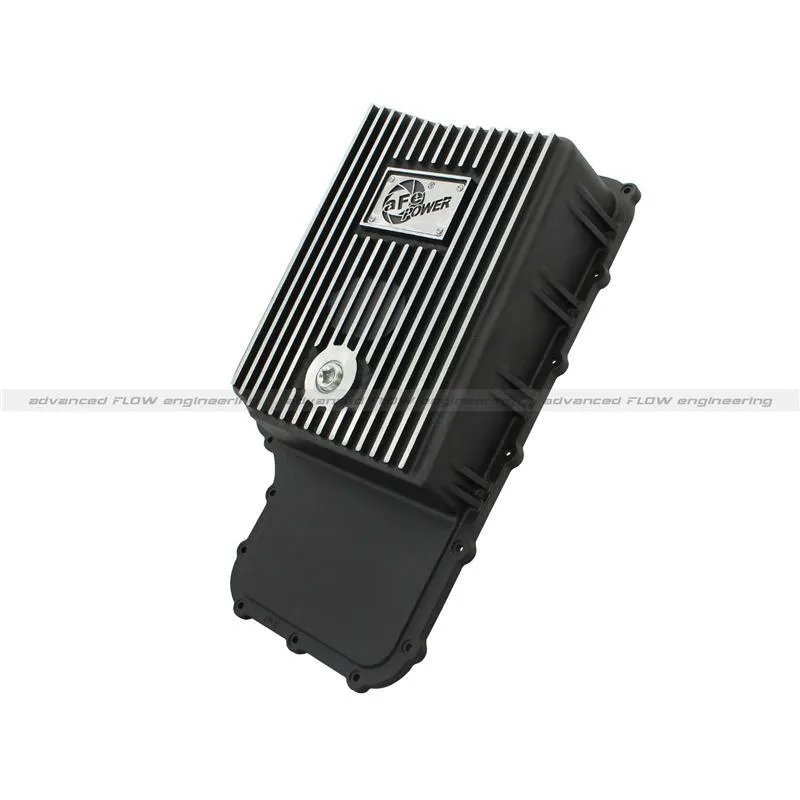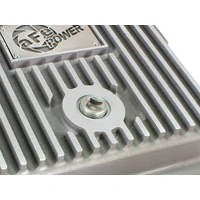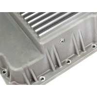 aFe Power's new deep transmission pan brings performance engineering to the protection of your transmission. aFe's transmission pan adds additional oil capacity over stock. Internal and external fins transfer heat from the fluid to the ambient air for maximum cooling. Constructed out of durable A380 aluminum with reinforced ribs for maximum strength. This pan also features a black, powder-coated finish with machined fins for protection and styling.